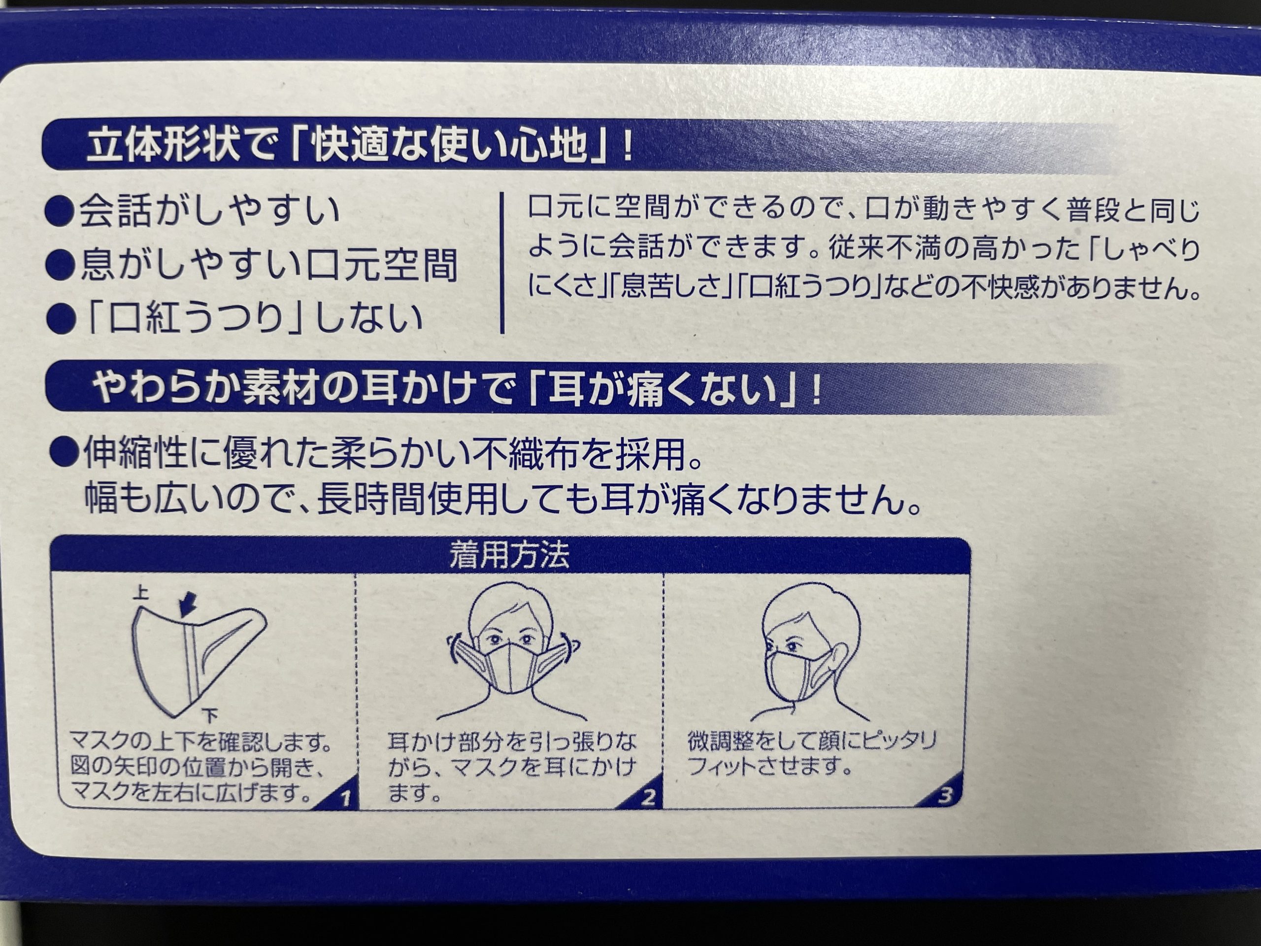 ●3層構造の高密度フィルタでバリア性に優れています。 ●超立体構造で口元に空間ができるので息苦しくなく、会話も楽です。 ●伸縮性に優れた柔らかい不織布で、長時間使用しても耳が痛くなりません。