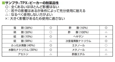 TPXビーカーの耐薬品性について詳しく知りたいのですが?