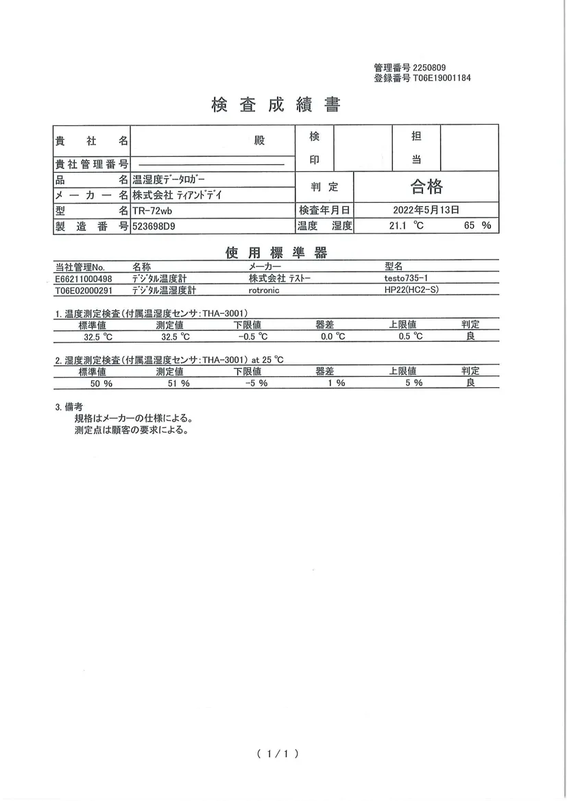 商品名おんどとりRTR-503BL校正料金(校正証明書他3点書類含、校正ポイント値固定)RTR-503BL-KOUSEI